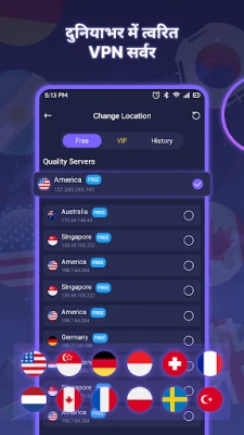 वीपीएन - फास्ट सुरक्षित प्रॉक्सी वैश्विक सर्वर नेटवर्क के माध्यम से असीमित और त्वरित कनेक्शन की सुविधा प्रदान करता है। संयुक्त राज्य अमेरिका, यूनाइटेड किंगडम, जर्मनी, फ्रांस और ऑस्ट्रेलिया सहित विभिन्न देशों में हमारे सर्वर स्थित हैं, जो आपको भौगोलिक प्रतिबंधों के बिना सामग्री तक पहुँचने और वेब को स्वतंत्रता से ब्राउज़ करने की अनुमति देते हैं। इस ऐप की प्रमुख विशेषताओं में एक त्वरित और सुरक्षित प्रॉक्सी शामिल है, जो आपके डेटा को एन्क्रिप्ट करता है और आपकी ऑनलाइन पहचान को छिपाता है। इसके अतिरिक्त, इसका त्वरित निजी ब्राउज़र सुविधा यह सुनिश्चित करती है कि आपकी ब्राउज़िंग हिस्ट्री और कुकीज़ गुप्त रहें, जिससे आपको एक गुमनाम और संरक्षित ऑनलाइन यात्रा मिलती है।
